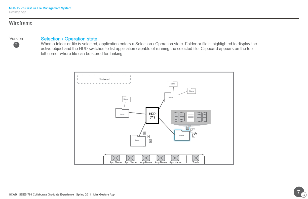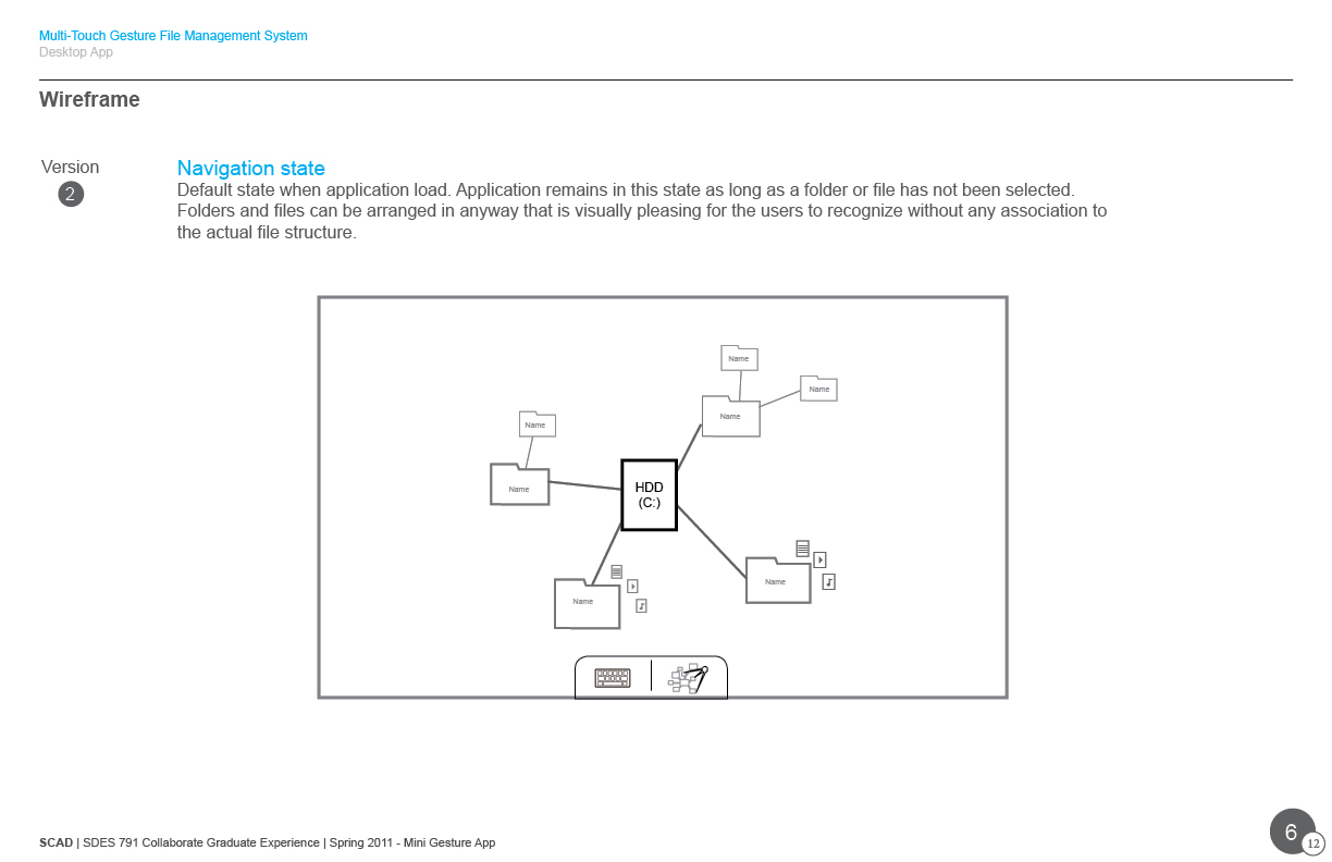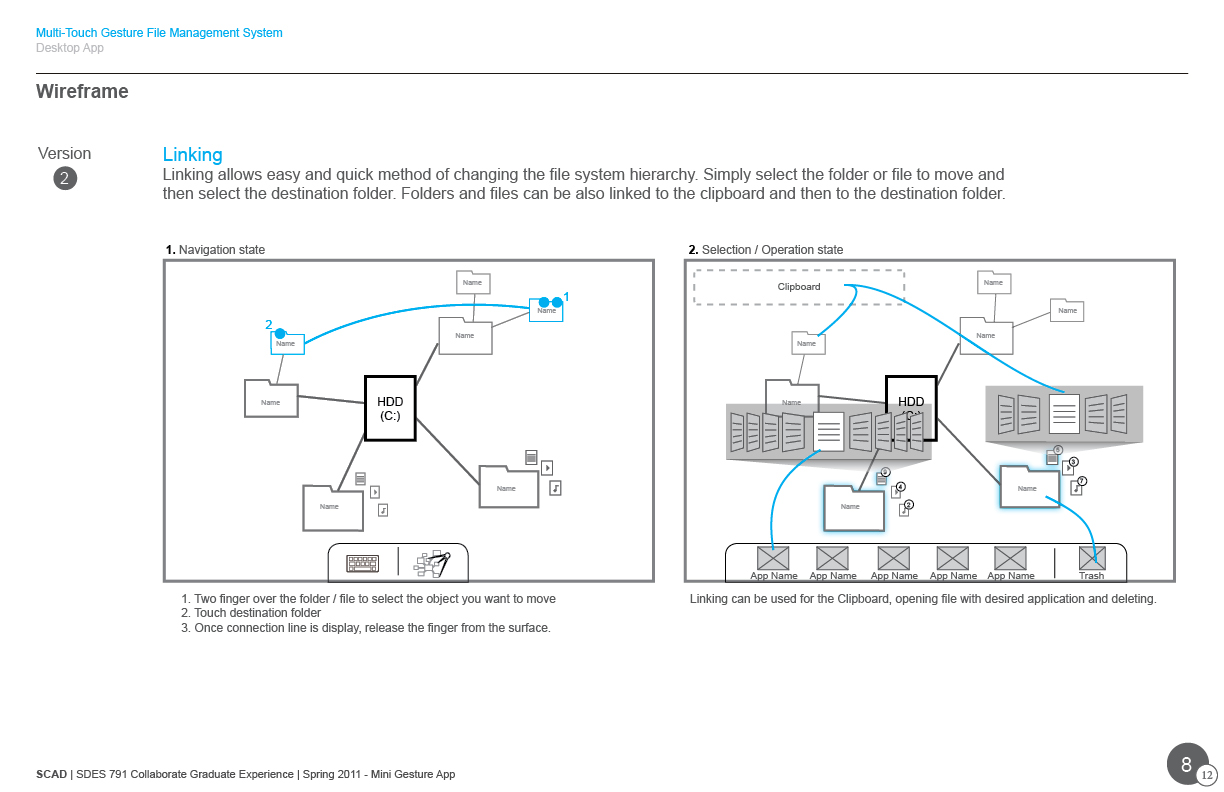 This case study focus on a file manager application for large display devices with multi-touch input. It was intended to promote designers approach interaction first in design flow as a method to define the learnable and efficient interface based on users necessary needs.